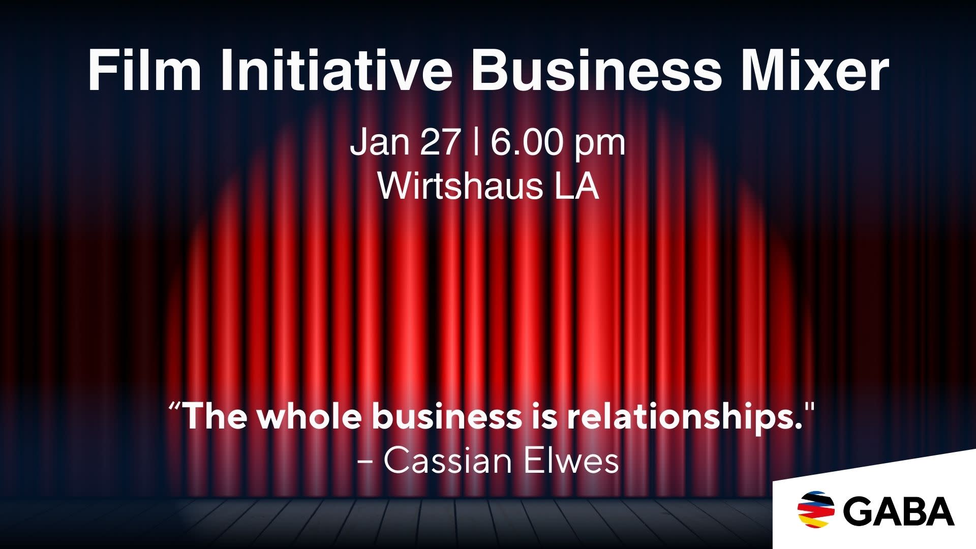 Join GABA’s Film Initiative Business Mixer, our monthly networking bringing together German American film professionals across production, entertainment, and creative fields.