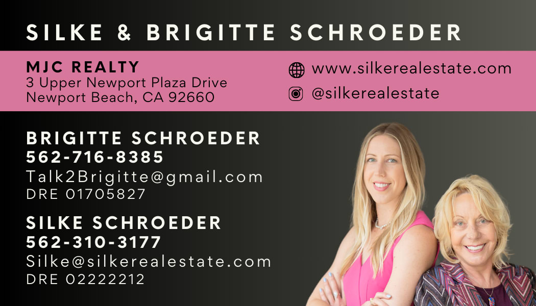 Mother-daughter team: Brigitte Schroeder & Silke Schroeder. Specializing in investment real estate in all of Southern California. Residential & Commercial, including Single Family Homes, Multi-unit Residential, Multifamily, Mixed Use, Office, Retail, Industrial, Land, Commercial Leasing, 1031 Exchange, Real Estate strategies to defer capital gains taxes, and more.
